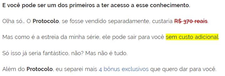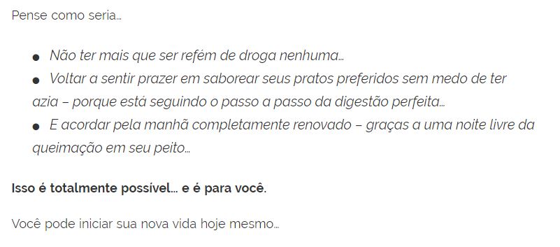 E, aí sim, depois de gerar toda a carga emocional, ilustrando o problema… depois de todo o conteúdo sobre a solução, e de ter estabelecido o critério de como curar esses problemas na cabeça da pessoa…